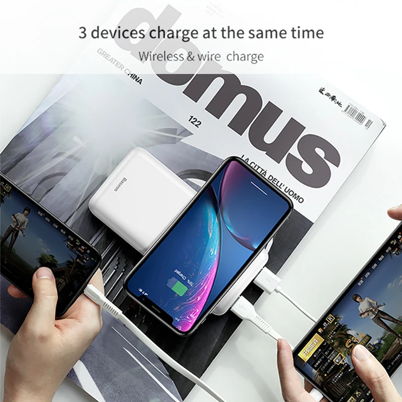 discount Baseus 10000mah Power Bank Wireless Charger Fast Charging for iPhone Samsung Xiaomi Huawei Dual USB
