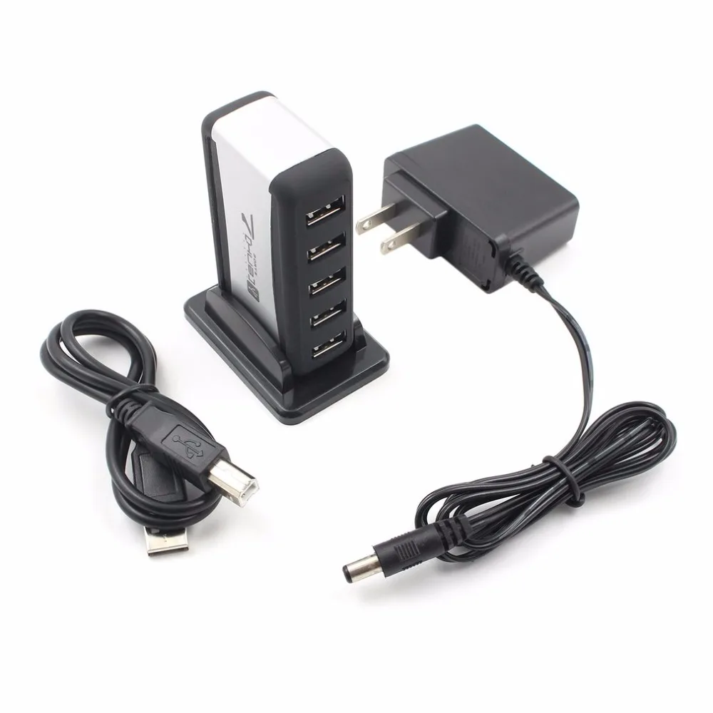 discounted Portable 7 Port USB 2.0 HUB High Speed USB Splitter with AC Power Adapter Cable for PC Laptop USB C