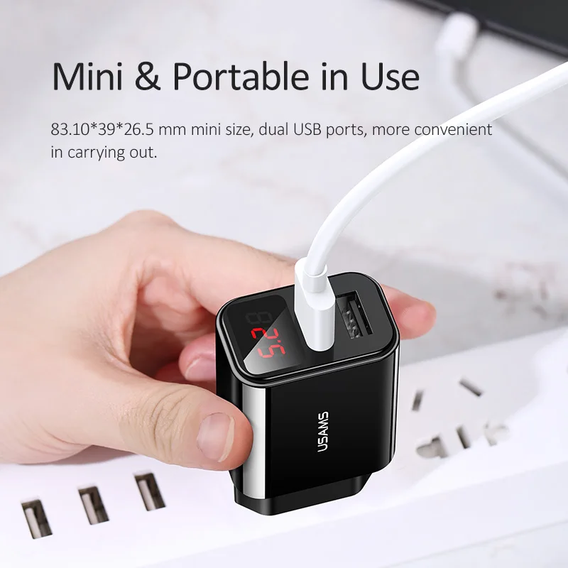 discounted USAMS Dual USB Charger LED Display Mobile Phone Charger EU fast charging Wall Charger For iPhone Sa