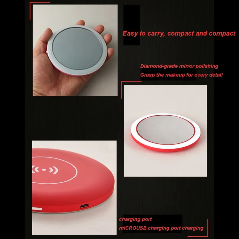 price reduction Portable LED Lighted Mini Circular Makeup Mirror Compact Travel Sensing Lighting Cosmetic Mirror Wi