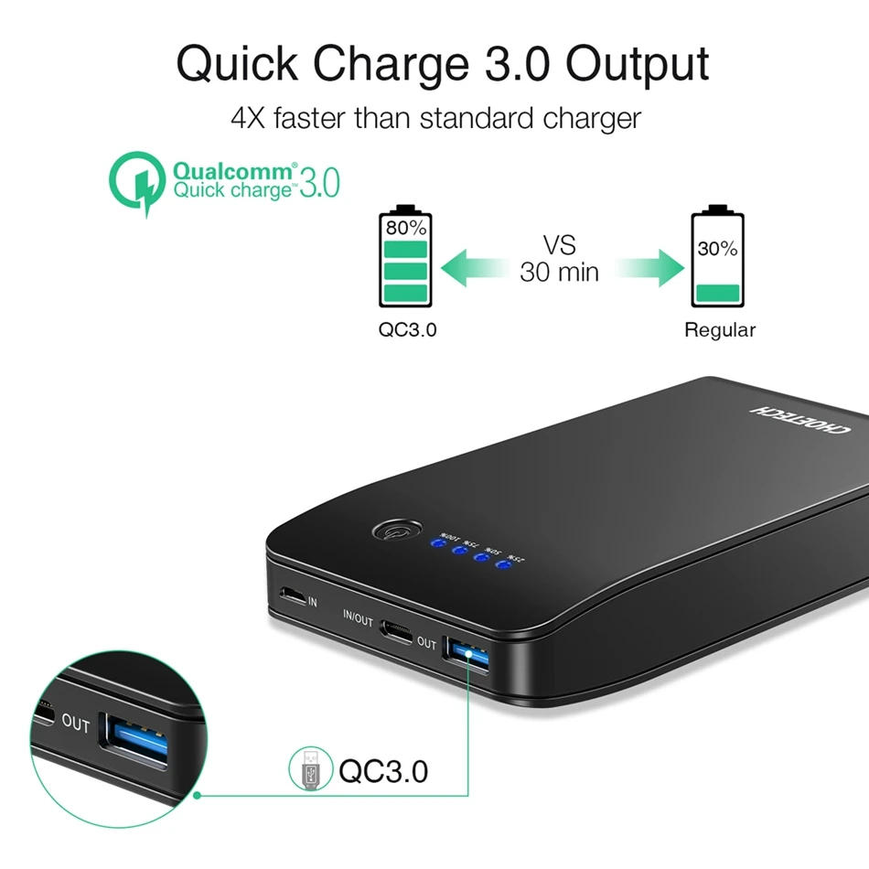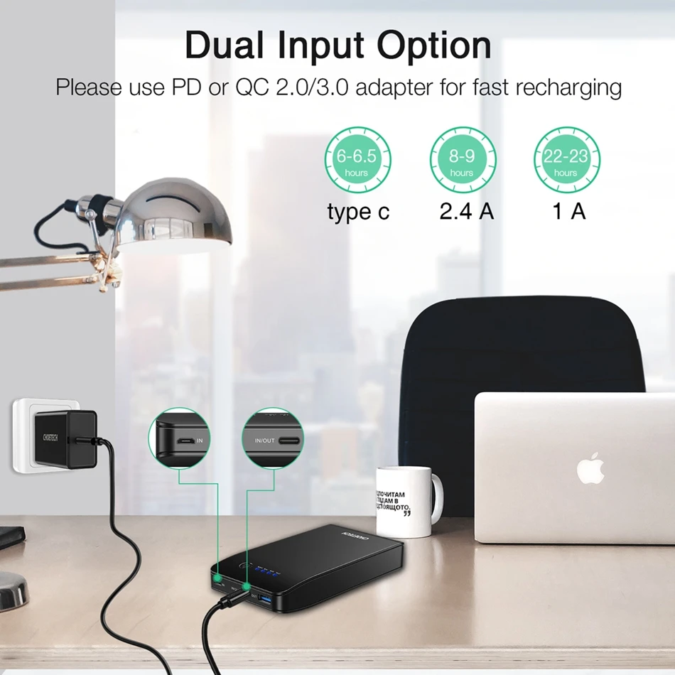 remarkable CHOETECH 20000mAh Power Bank for Xiaomi huawei QC3.0 USB 18W Mobile Phone Portable Charging Charger