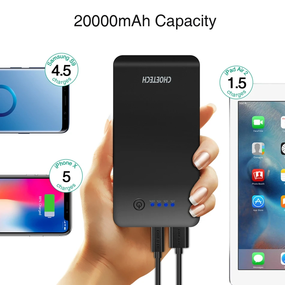 Ideal CHOETECH 20000mAh Power Bank for Xiaomi huawei QC3.0 USB 18W Mobile Phone Portable Charging Charger