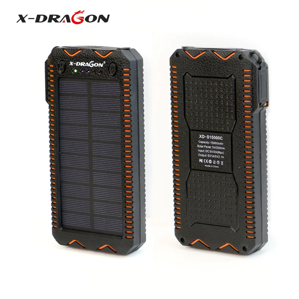 lower price X-DRAGON Waterproof Solar Power Bank 15000 mAh Portable Solar Charger with Cigarette Lighter SOS St