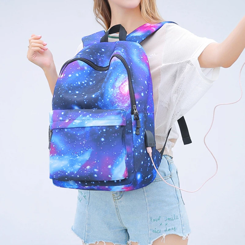 Most effective USB Charging School Bag Multicolor Backpack Space Printing Backpacks for Teenager Men Women Starry